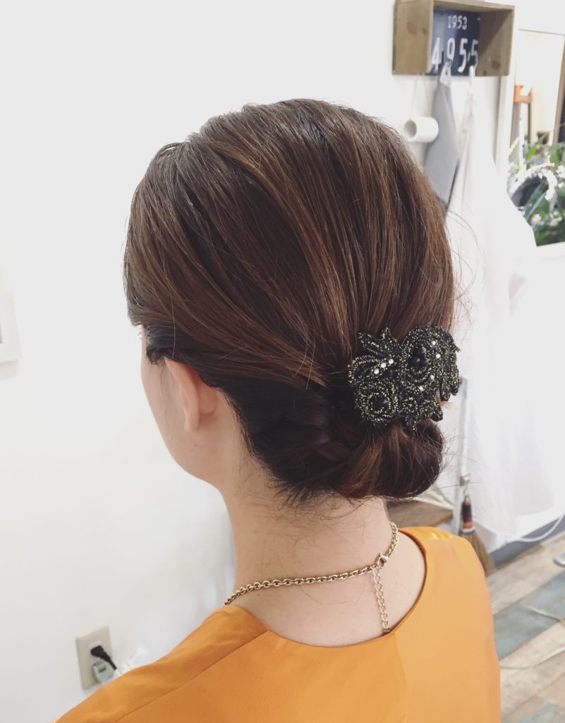 Mr.Sugarではかけられる時間を押さえてのお値段になっているので、ヘアセットの下準備として巻いたりができないため、また短めの長さのお客様が多いため、比較的ルーズ過ぎないアップが多めです。